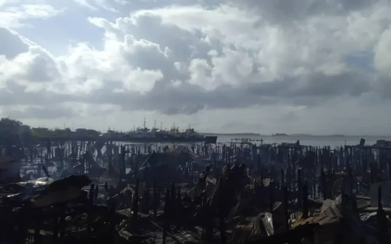 90 rumah atas air musnah dalam satu kebakaran di Kampung Cenderamata, Batu Sapi dekat sini awal pagi tadi.
