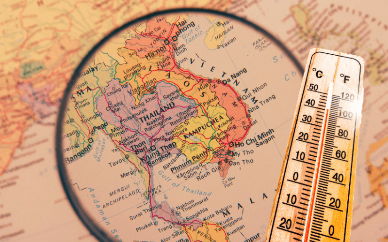 Asia Tenggara kini sedang mengalami cuaca panas akibat perubahan iklim dan fenomena El Nino. Menurut akhbar, beberapa tempat di Filipina dan Thailand mencecah suhu sehingga 53 darjah Celsius.