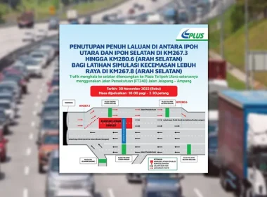 PLUS Tutup Lebuhraya Di Ipoh Utara-Selatan Esok