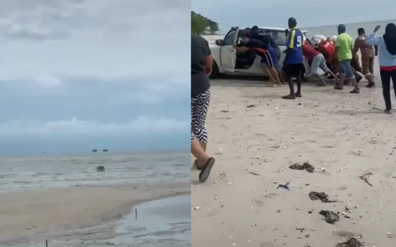 Baru-baru ini, sebuah Perodua Myvi dirakam ‘terdampar’ di tengah laut di Pantai Sentosa, Sekinchan.
