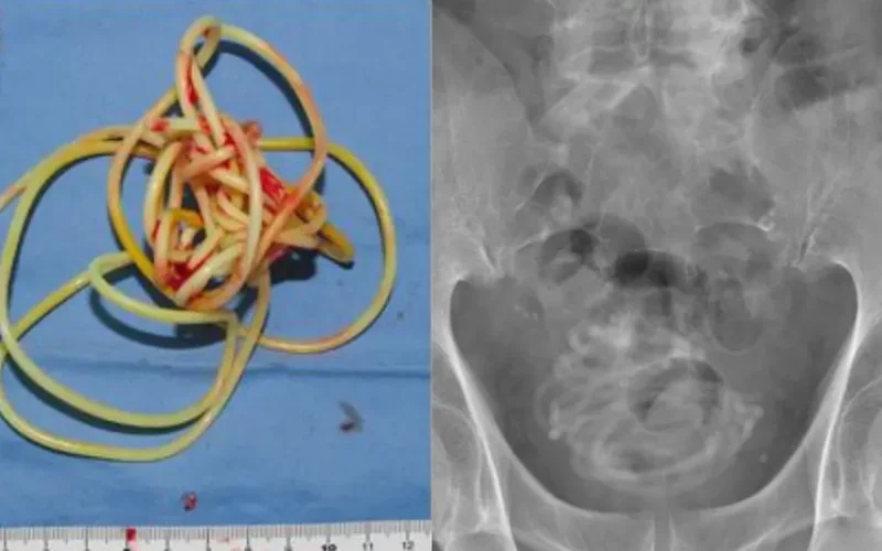 Difahamkan, pegawai perubatan mengalami kesukaran untuk mengeluarkan tali itu menerusi saluran sama menyebabkan mereka terpaksa membuat lubang di pundi kencing pesakit tersebut.