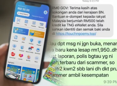 Baru-baru ini, satu lagi taktik baharu scammer yang mendakwa kerajaan “BN” mengagihkan bantuan tunai melalui Touch ‘n Go…